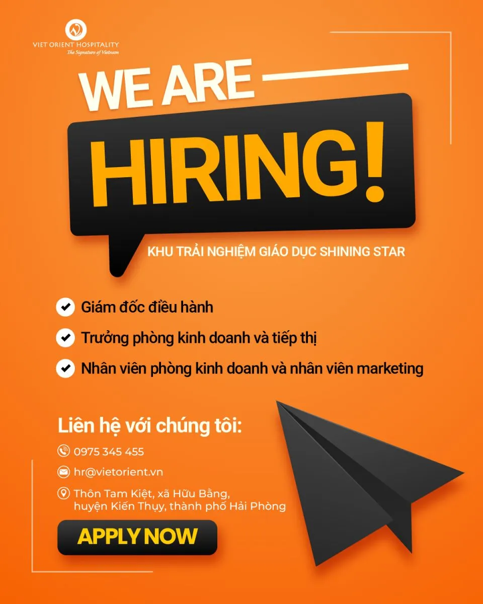 Bạn yêu thích lĩnh vực giáo dục – trải nghiệm? Bạn mong muốn làm việc trong một môi trường năng động, sáng tạo và nhiều cơ hội phát triển? Hãy gia nhập Shining Star để cùng chúng tôi xây dựng không gian giáo dục trải nghiệm hàng đầu tại Hải Phòng!