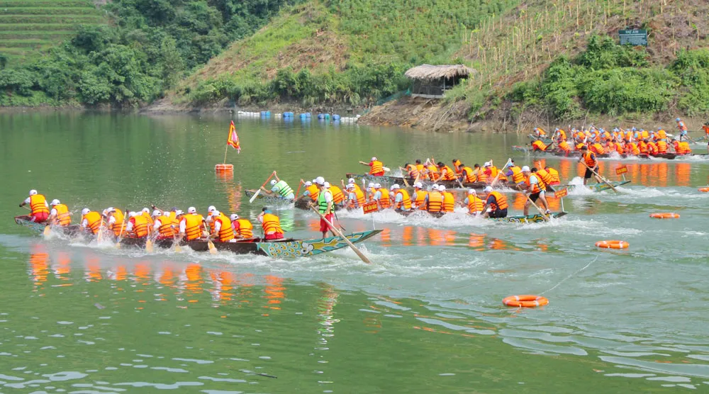 Đoàn tham dự Lễ hội đua thuyền trên lòng hồ thủy điện sông Chừng - Huyện Quang Bình - Hà Giang